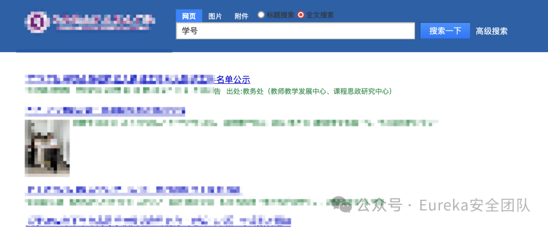 有使用说明和初始密码的提示,初步知道了这个系统的大致账号规律,账号是学生的学号,初始密码是身份证后6位,所以接下来的渗透思路就是找到学生的学号和ta的身份证。学号这个很好找,直接官网搜索🔍关键字“学号”,出来一大堆。