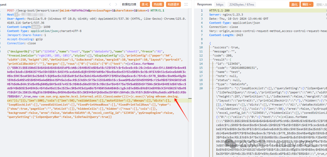 1、写入恶意报表数据(Fastjson BCEL),Dnslog验证