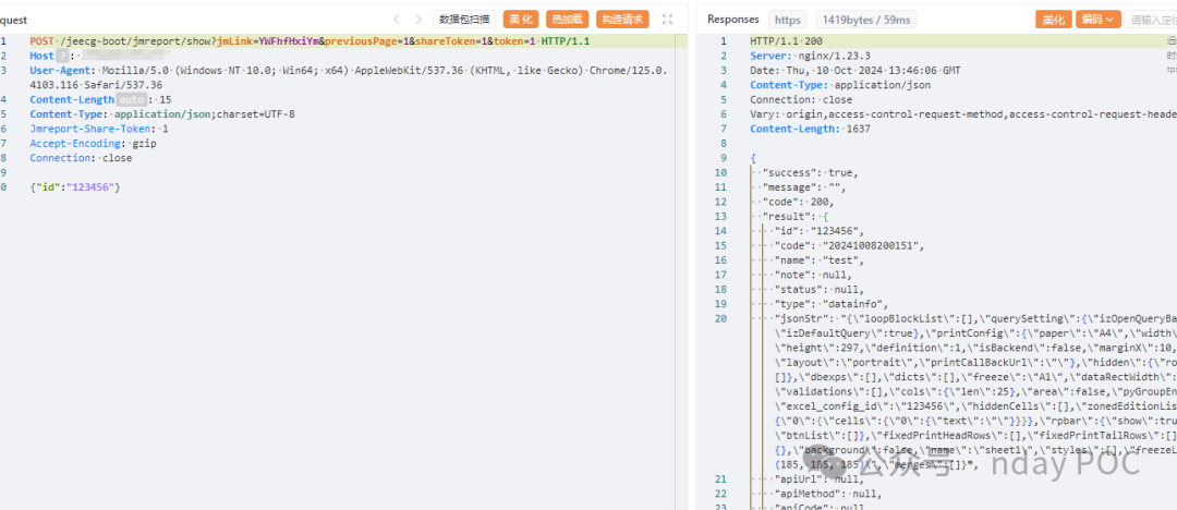 JeecgBoot 存在权限绕过漏洞,未经身份验证的远程攻击者可构造jmLink、sharetoken参数或JmReport-Share-Token请求头绕过权限认证访问后台接口,进一步深入利用可实现远程代码执行、木马植入,导致服务器失陷等问题。