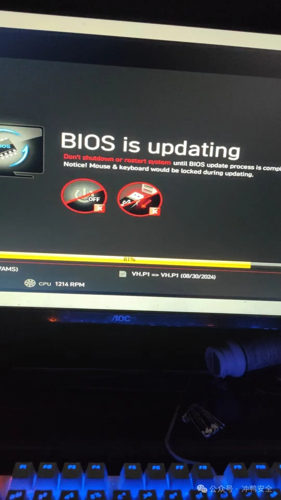 重启,按下高贵的usb flash button,指示灯狂闪,说明work了