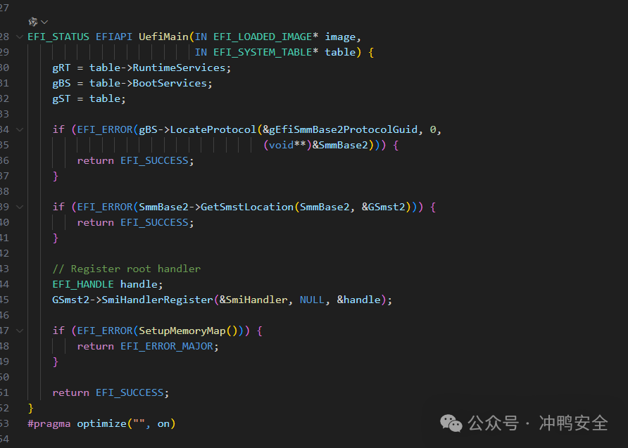 他的这个代码,是标准的efi启动注册Smihandler的代码