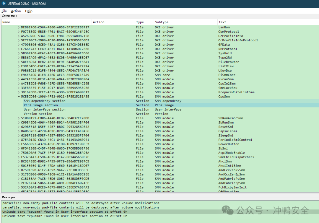 下载完后,用UEFITool打开,我们是SMM层的后门,所以直接搜cpusmm