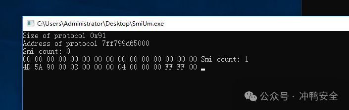 这个非常小巧唯美的后门能帮助我们直接给powershell进行提权,一旦主板刷入了带后门的BIOS,只需要触发SMI就行.测试如下: