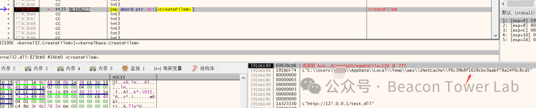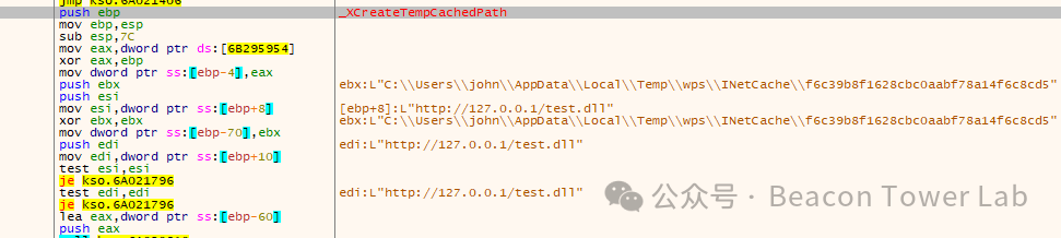当文档被打开时,wps使用_XUrlDownloadToCacheFile函数下载文件到temp目录下的wps\INetCache目录中。