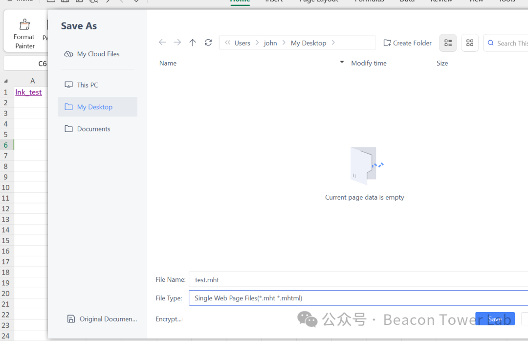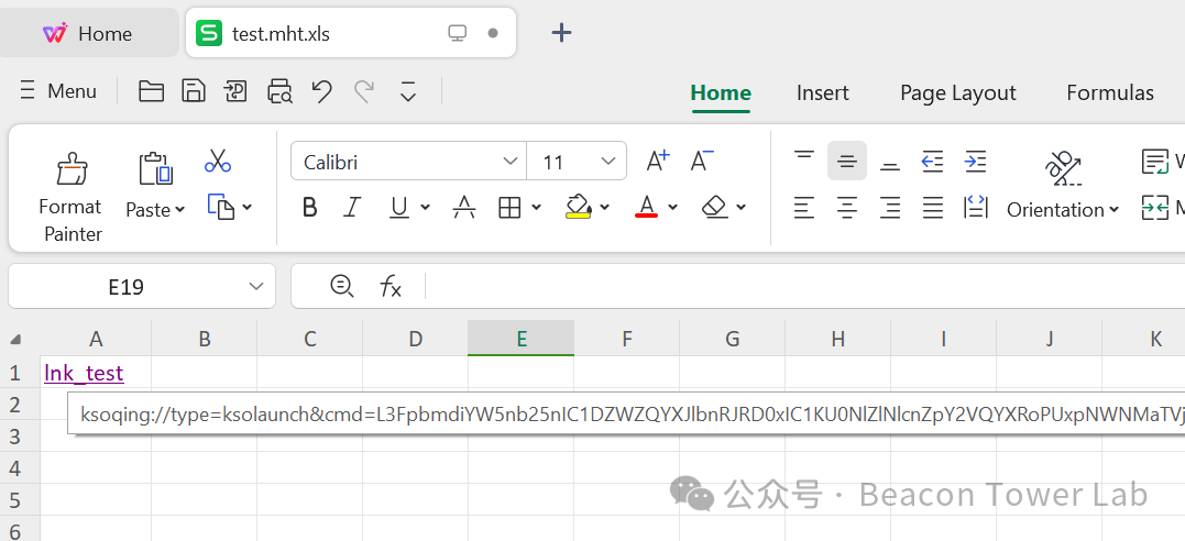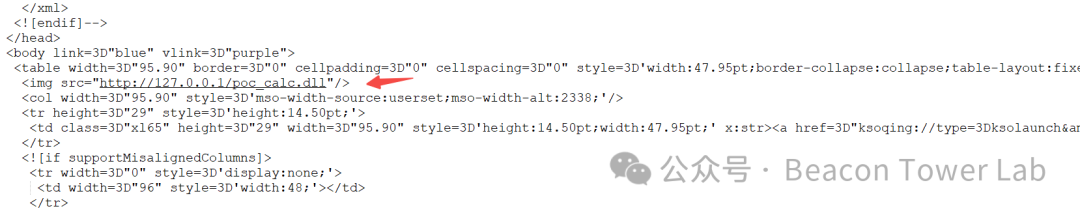 使用路径穿越的漏洞可以加载指定DLL文件,但这还不够。APT-C-60攻击者使用MHTML格式的xls电子表格文件,利用其特性,实现下载远程DLL文件的目的。WPS支持MHTML格式的文档,这种文档可以包含 HTML、CSS 和 JavaScript 等文件,方便在浏览器中显示文档。