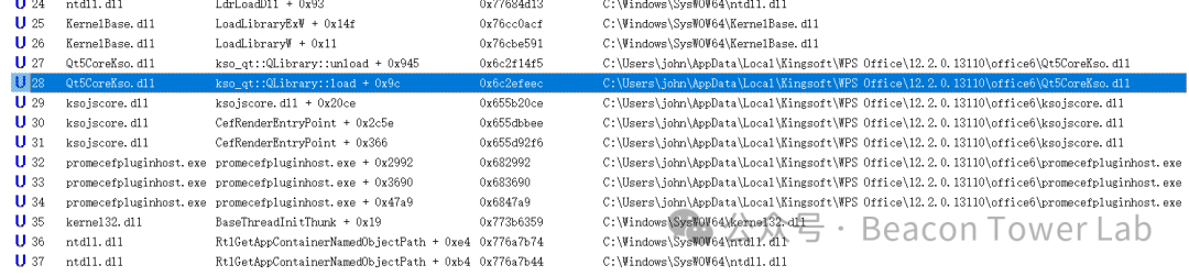 这个参数可以指定一个文件名,这个文件会被kso_qt::QLibrary::load函数加载到内存执行。默认情况下,如果只是指定一个文件名,会按照DLL搜索顺序搜索和加载这个文件,比如加载同EXE目录下指定的DLL文件。但是这个参数未做任何过滤,可以指定“..\”包含目录的路径,存在路径穿越漏洞,可以加载任意指定的DLL文件,最终实现任意代码执行。