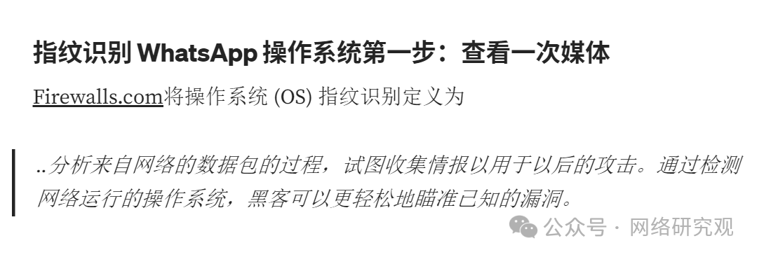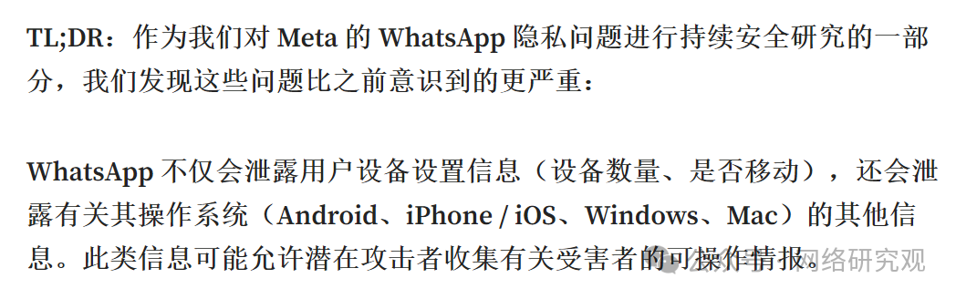 WhatsApp 设备识别机制中存在重大隐私漏洞,攻击者可以利用该漏洞通过 WhatsApp 的端到端加密 (E2EE) 协议获取用户设备操作系统的指纹。