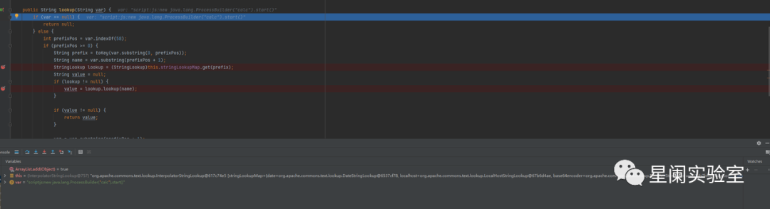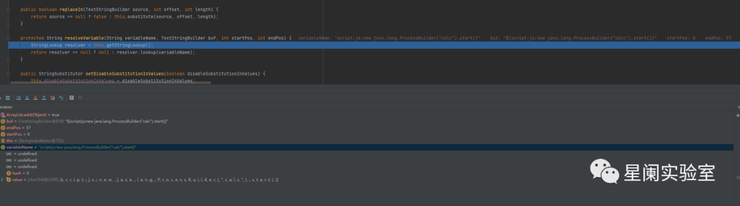到org.apache.commons.text.lookup.ScriptStringLookup#lookup中。