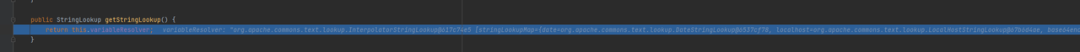 在getStringLookup的值之后,就会直接到org.apache.commons.text.lookup.InterpolatorStringLookup中调用lookup方法。