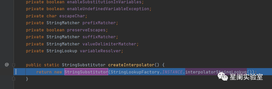这里就是实例化了StringSubstitutor 并向其中传入 StringLookupFactory.INSTANCE.interpolatorStringLookup()