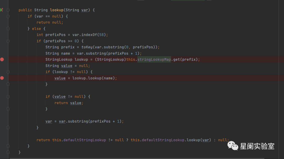 这里lookup方法会提取”:“后的部分作为 prefix 值,然后根据 stringLookupMap 提取其对应的 lookup 实例化对象。