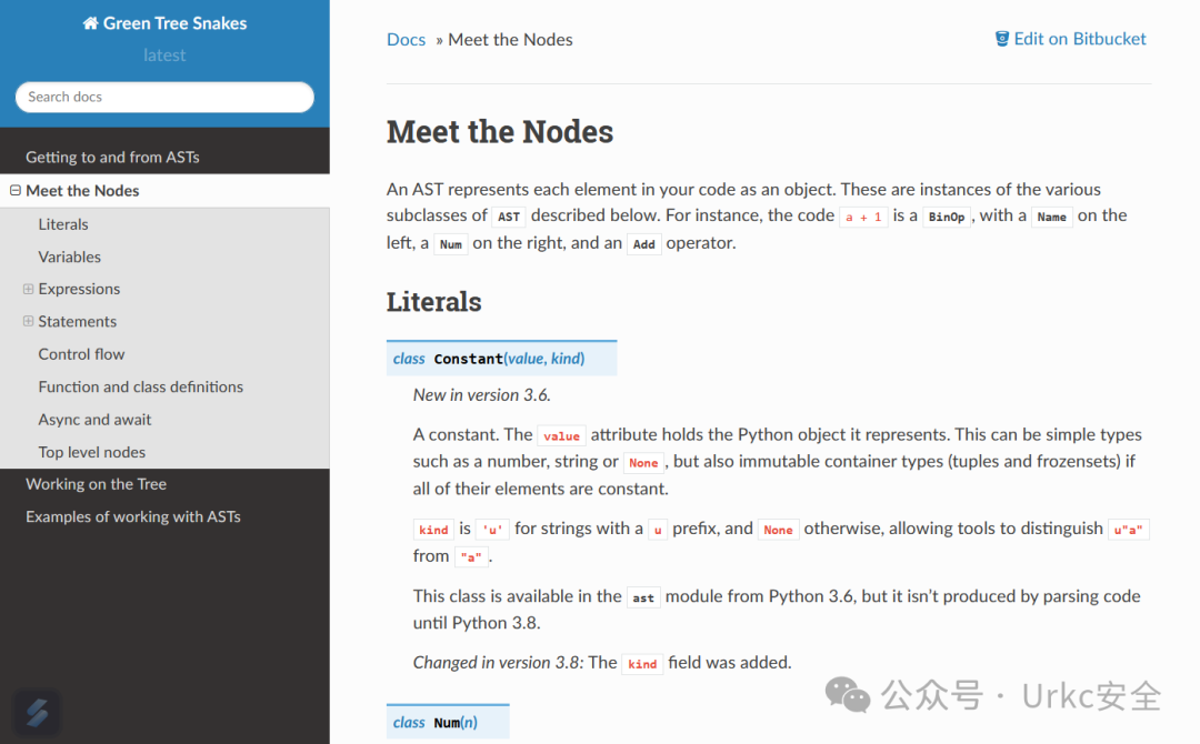简单说明一下一个函数的实现,首先是”type”:”FunctionDef”表明这一段代码是函数定义,函数中则会有args,表明函数的参数,lineno是代码所在的行,name是函数名。更详细的接口文档见