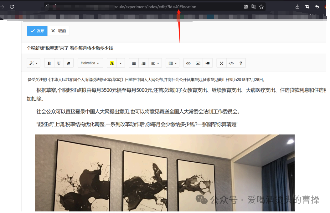 随后更改url中id的参数:我们把id=46改为id=40,然后进行发布