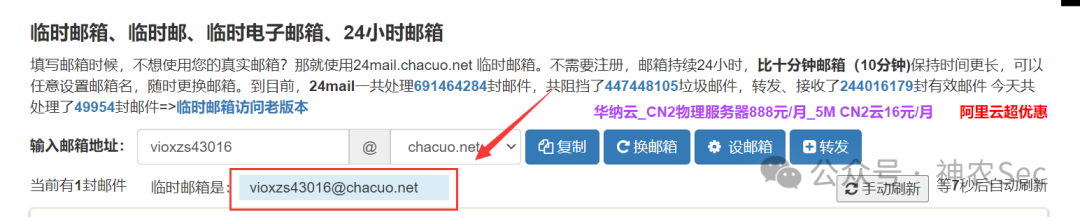 我们先申请一个临时邮箱: