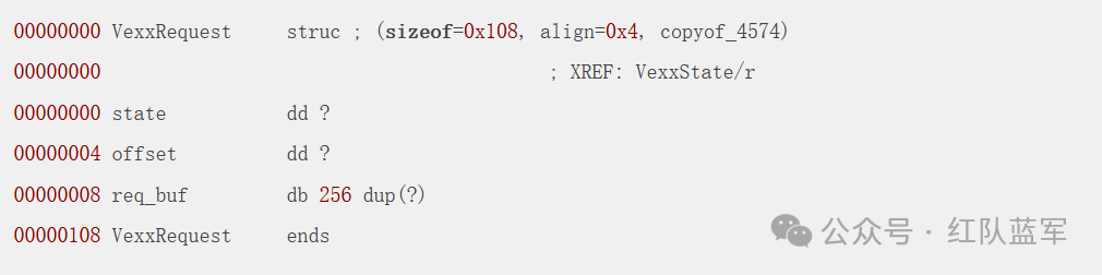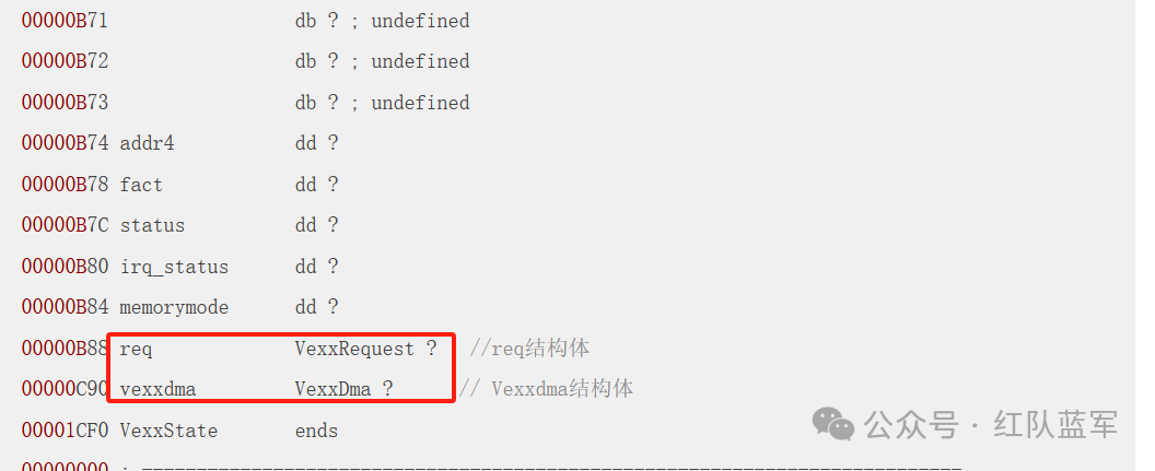 在实例结构体中 req_buf 的大小为 0x100, 而 addr = offset + addr, 这里只检查了之前的 addr <= 0x100, 但是没有检查 offset+addr 是否越界, 而在 vexx_ioport_write 中是可以控制 offset 的, 从而导致越界写。