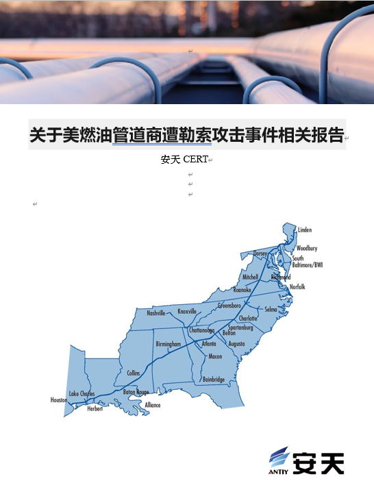 关于美燃油管道商遭勒索攻击事件相关报告封面