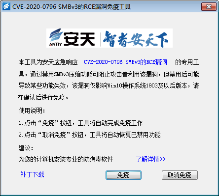 CVE-2020-0796 SMBv3漏洞免疫工具