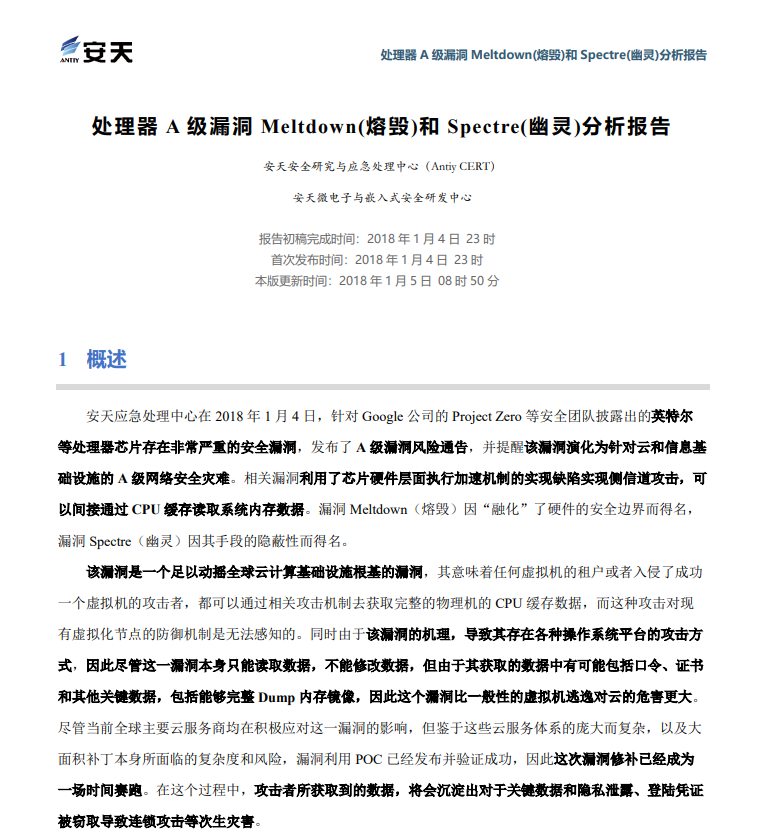 Meltdown(熔毁)和 Spectre(幽灵)分析报告首页