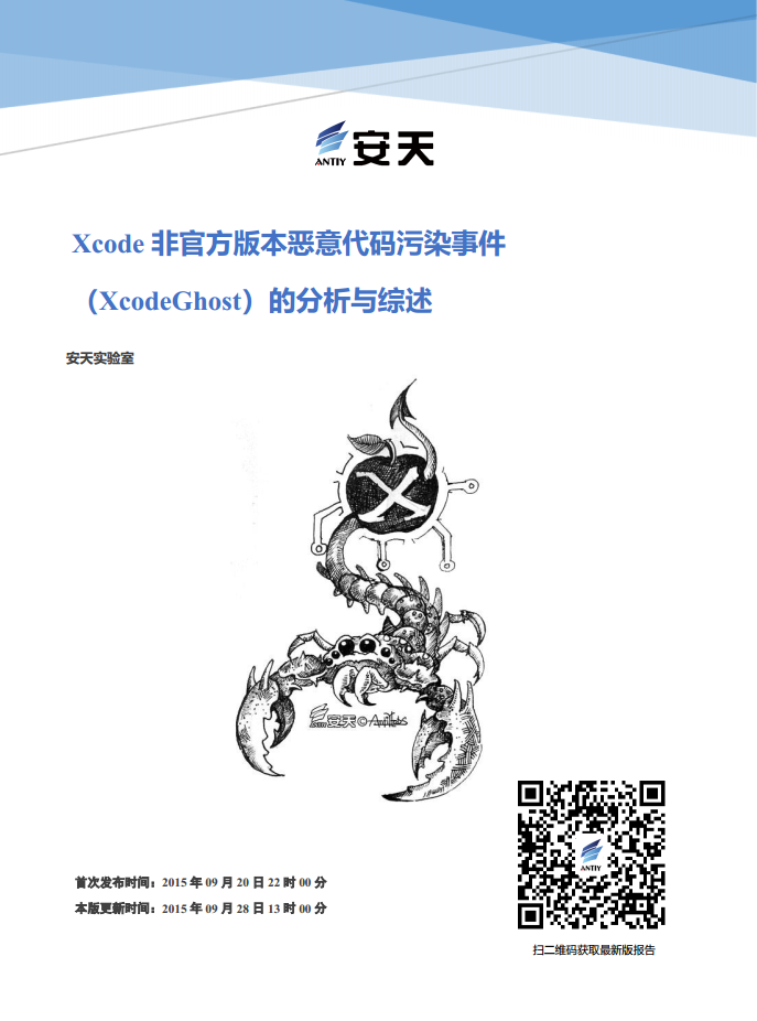 Xcode非官方版本恶意代码污染事件(XcodeGhost)报告封面