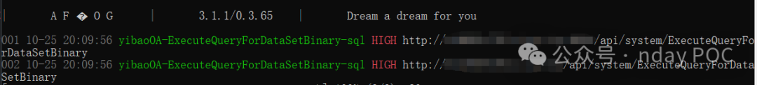 易宝OA ExecuteQueryForDataSetBinary接口处存在SQL注入漏洞,未经身份认证的攻击者可以通过此漏洞获取数据库敏感信息,用户名密码等凭据,进一步利用可获取服务器权限。