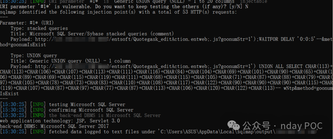 浙大恩特客户资源管理系统 Quotegask_editAction 接口处存在SQL注入漏洞,未经身份验证的远程攻击者除了可以利用 SQL 注入漏洞获取数据库中的信息(例如,管理员后台密码、站点的用户个人信息)之外,甚至在高权限的情况可向服务器中写入木马,进一步获取服务器系统权限。
