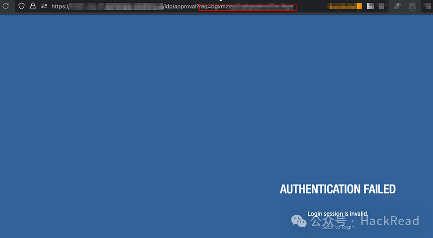 4.发出会话令牌 请求获取会话令牌。 获取 /idp/approval?req=[UNIQUE_ID] UNIQUE_ID值与第一步中的值相同。这意味着,如果您知道这个值,您可以点击此方法并获得会话。由于不存在csrf 保护,因此可以执行会话固定。