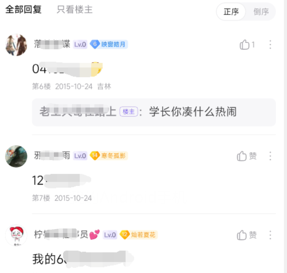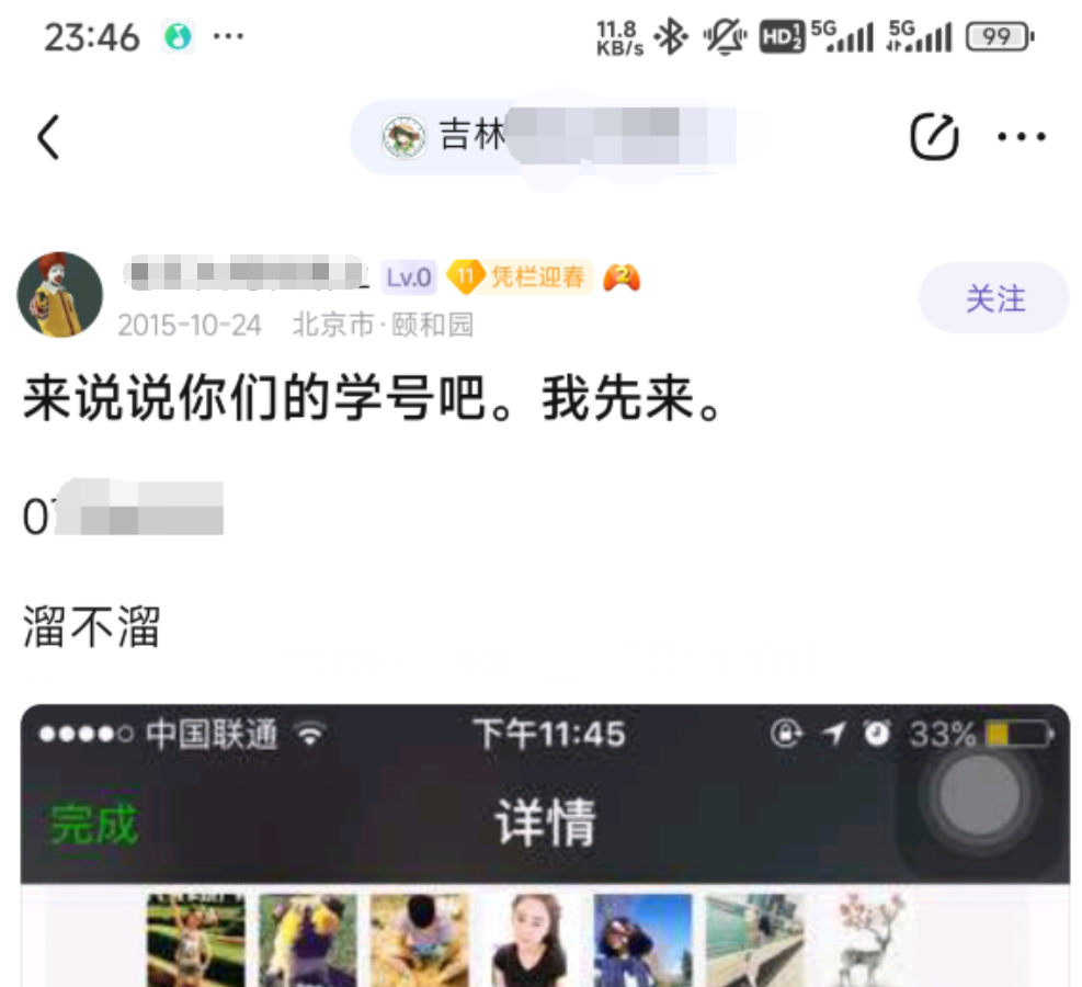 然后在百度贴吧等社交平台收集学生学号信息,这里找到了一个15年的帖子暴露了许多学号的帖子