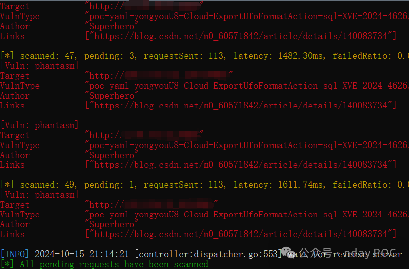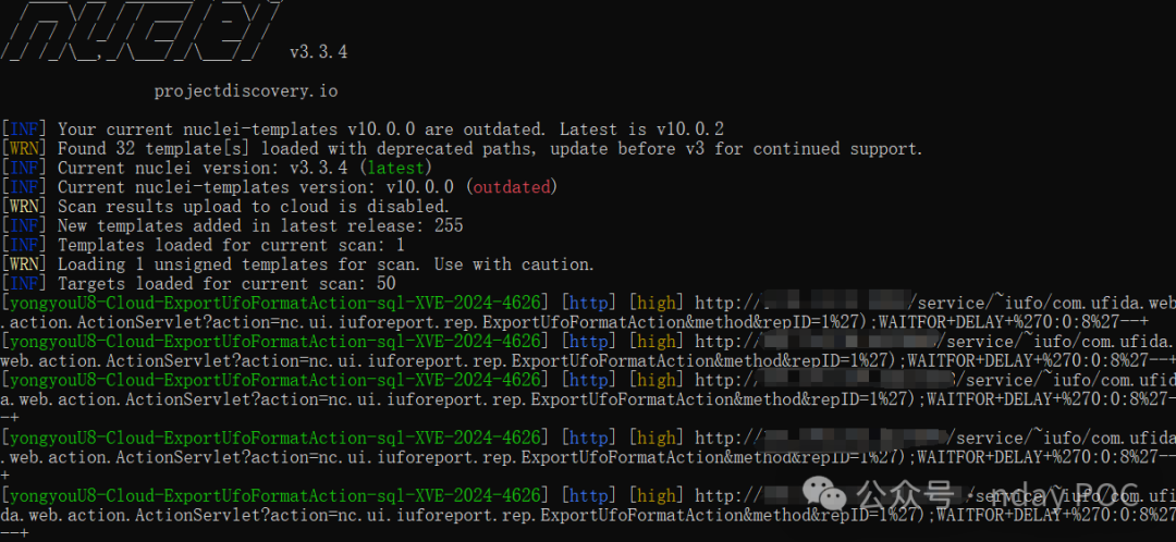 用友U8 Cloud ExportUfoFormatAction 接口处存在SQL注入漏洞,未经身份验证的远程攻击者除了可以利用 SQL 注入漏洞获取数据库中的信息(例如,管理员后台密码、站点的用户个人信息)之外,甚至在高权限的情况可向服务器中写入木马,进一步获取服务器系统权限。