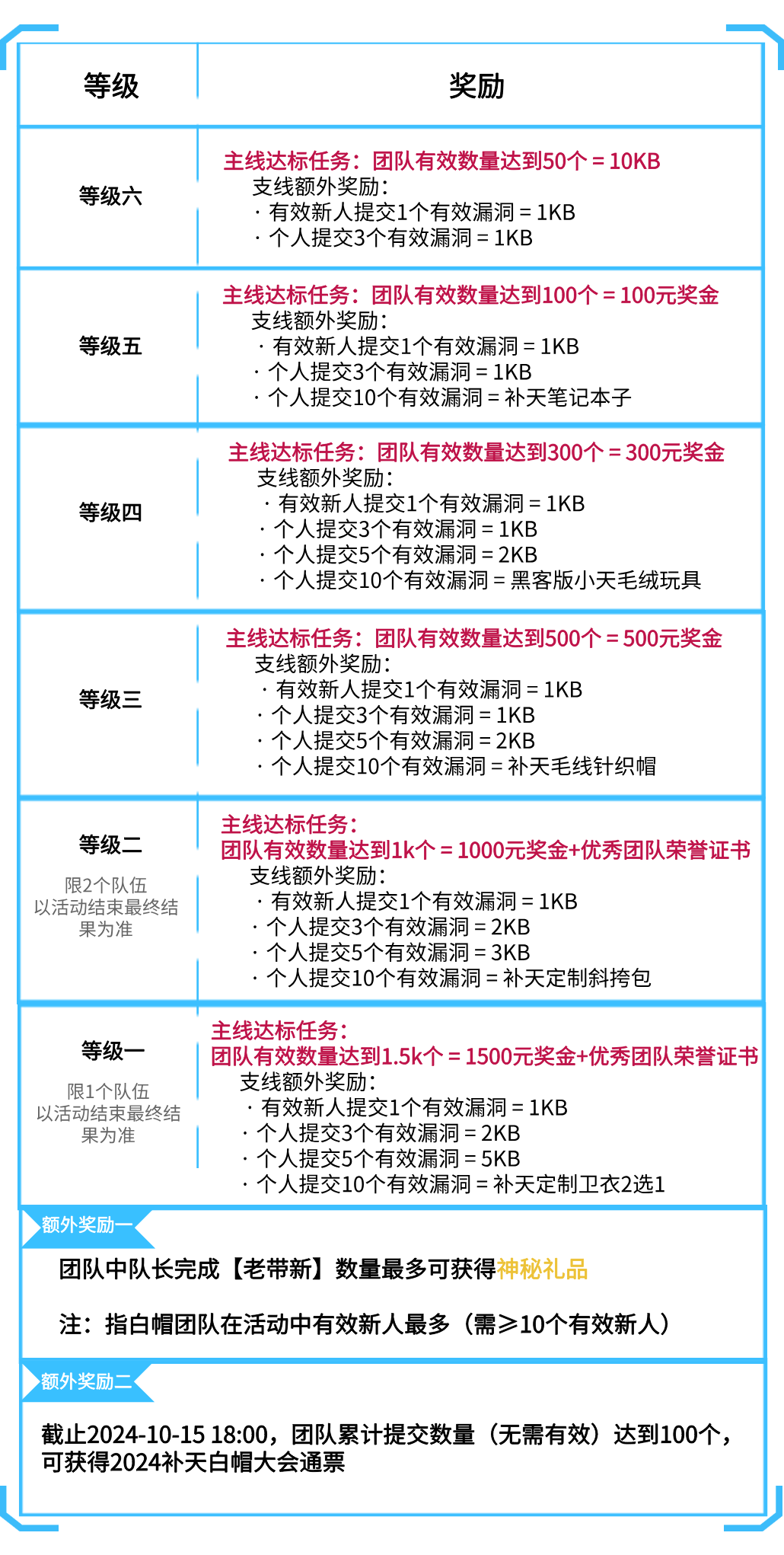 - 漏洞基础奖励无kb和积分,活动额外奖励由结束后一次性发放