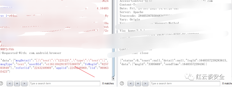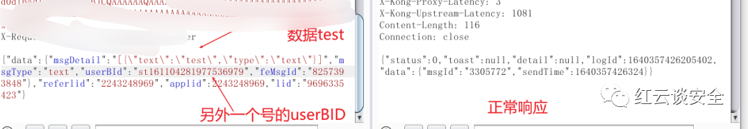 把这一个号的userBID替换掉另外一个号的userBID、成功回显、然后登到另外一个号上去、发现已经发送成功