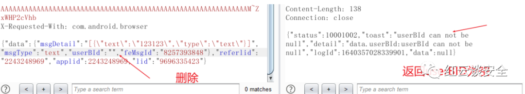 这里就只是通过userBID来鉴权、我把userBId删除、或者随机填写一个userBID、会显示不存在userID