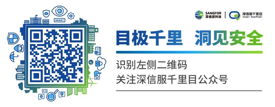 深信服千里目安全技术中心-创新研究院一直致力于安全和云计算领域的核心技术前沿研究,推动技术创新变革与落地,拥有安全和云计算领域500+ 专利,实现攻击和检测技术的相互赋能,并及时把能力输入到业务线中,实现自身产品的迭代优化。未来,深信服千里目安全技术中心也将不断提高专业技术造诣,深度洞察网络安全威胁,持续为网络安全赋能。