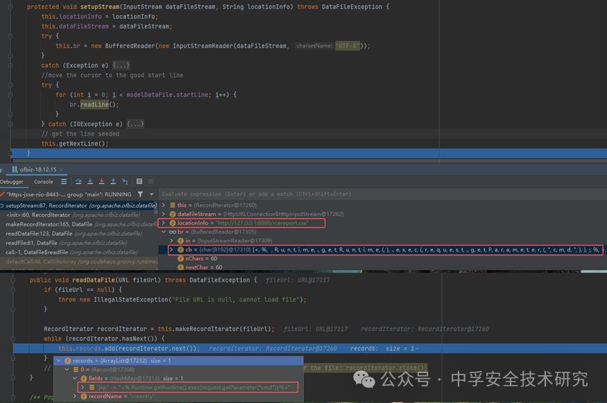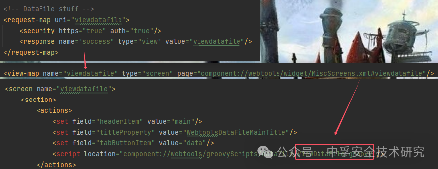 权限绕过的原理和之前一样,通过不需要鉴权的路由来绕过。触发命令执行的文件不同,之前利用的是 ProgramExport.groovy,现在利用 ViewDataFile.groovy 。