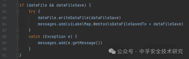 最后就是调用 dataFile.writeDataFile(dataFileSave),将 DataFile 对象中保存的数据文件内容写入到指定的文件中。