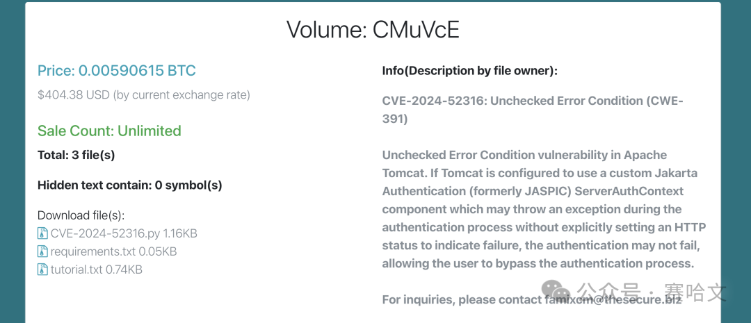 Apache Tomcat最新高版本身份验证绕过漏洞,POC价格接近3000