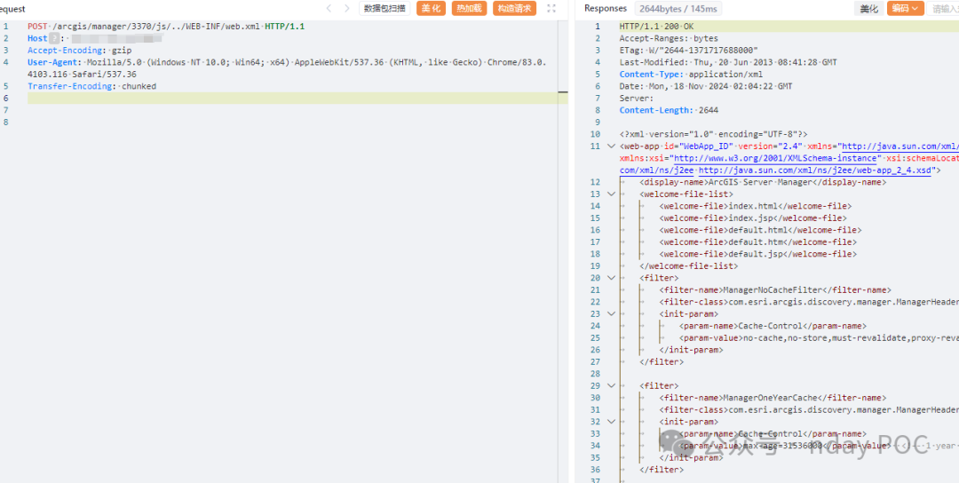 ArcGIS地理信息系统 存在任意文件读取漏洞,未经身份验证攻击者可通过该漏洞读取系统重要文件(如数据库配置文件、系统配置文件)、数据库配置文件等等,导致网站处于极度不安全状态。