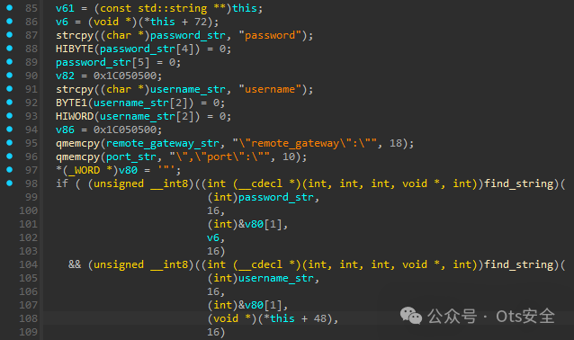 如下面的代码片段所示,FortiClient 插件从内存中的两个不同的 JSON 对象中查找用户名、密码、远程网关和端口。