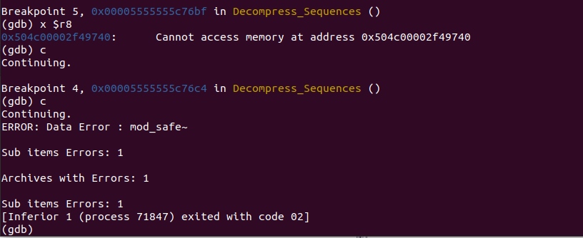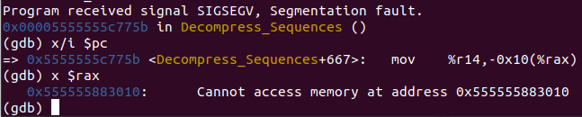 ,直到您到达函数出错的地方。对我们来说,我们在Decompress_Sequences+0x204