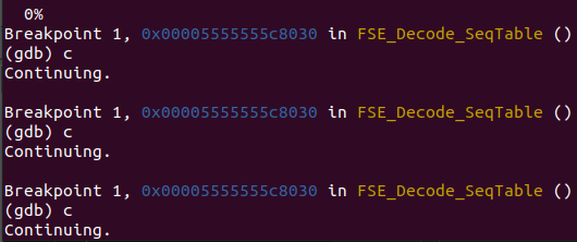 一旦处理完这些,我们就可以专注于在 gdb 会话中调用FSE_Decode_SeqTable