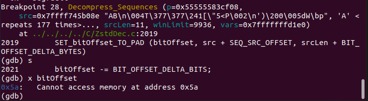 是由几个函数设置的,最显著的是源代码第 2199 行的这个丑陋的“GET_FSE_REC_SYM”宏。这个宏扩展为结构体中的一个字段,但我宁愿在 GDB 中第 2199 行设置一个断点,看看里面有什么…