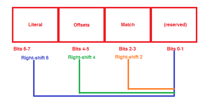 - 每个 2 位字段的值(1,因此我们可以像RLE