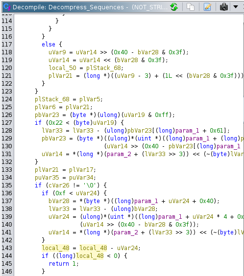 的三次调用——在这方面成功!现在我们可以继续查看下一个调用的函数,即Decompress_Sequences