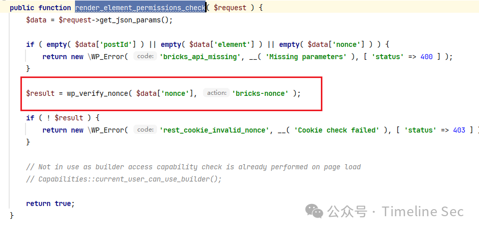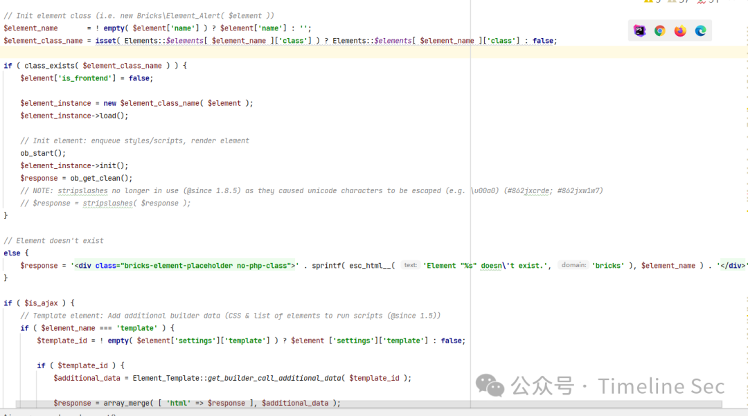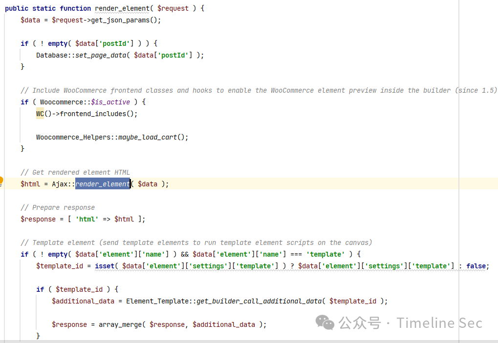 继续搜render_element的调用方法,发现在api.php中存在命名相同的方法调用了Ajax#render_element,这里的api.php实际上是一个处理注册的 REST API 端点之一的文件
