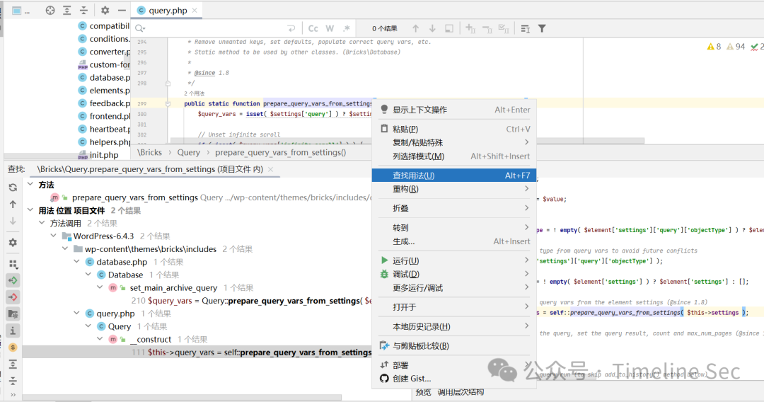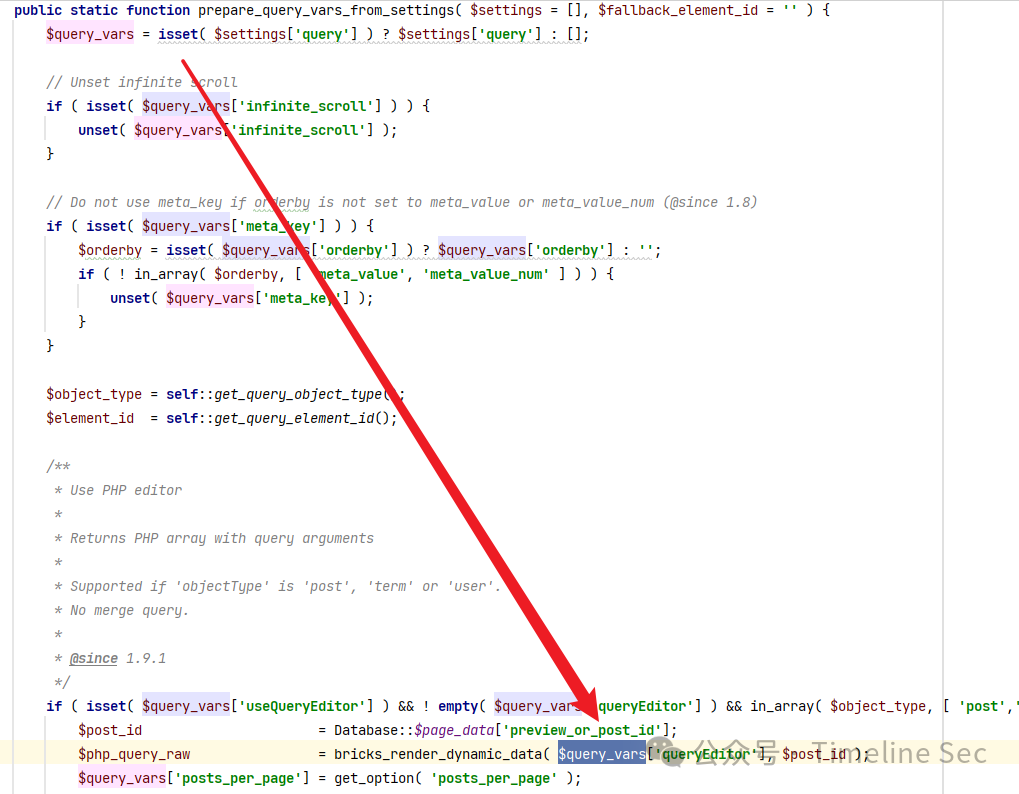 首先看下漏洞触发的具体位置,位于\wp-content\themes\bricks\includes\query.php中prepare_query_vars_from_settings函数中
