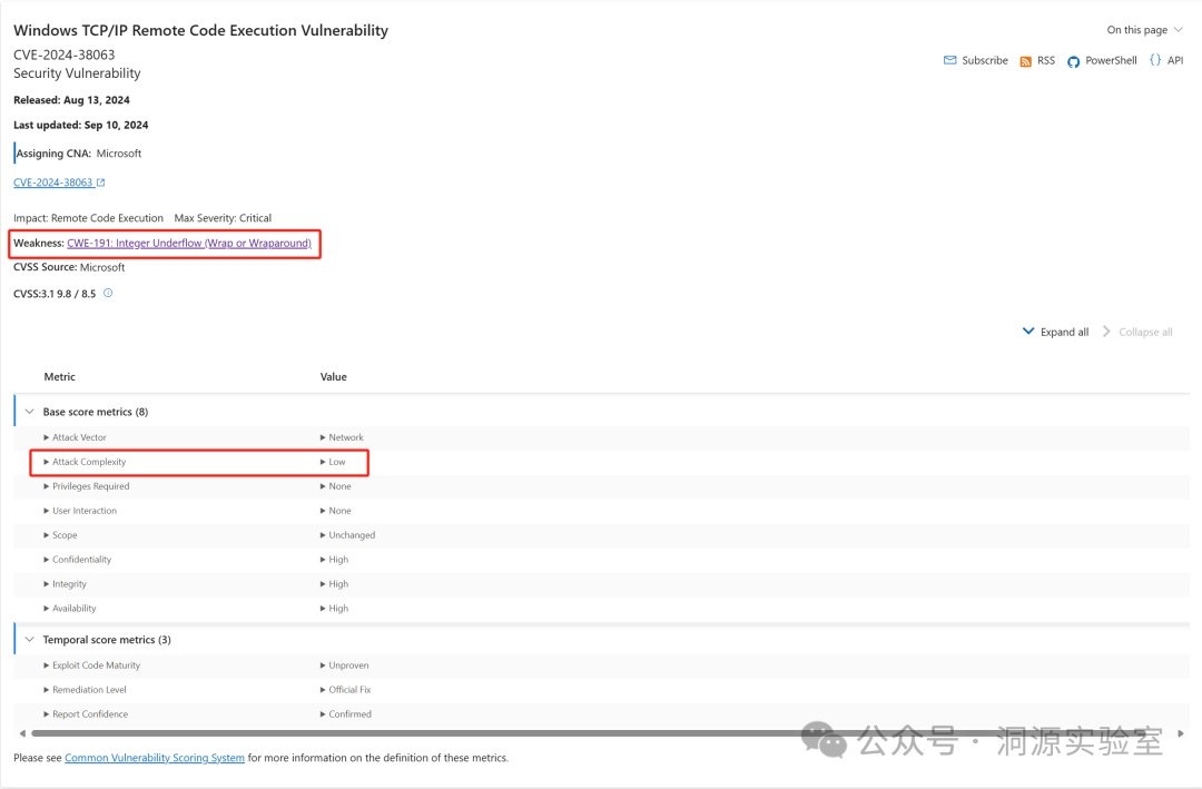 2024年8月13日,微软在“补丁星期二(Patch Tuesday)”更新中披露了一个严重漏洞CVE-2024-38063,该漏洞是由国内赛博昆仑实验室的Wei发现并上报,影响到Windows系统的TCP/IP协议实现,TCP/IP协议是用于互联网通信的基本通信协议。该漏洞的CVSS评分为9.8(严重),且允许攻击者在启用IPv6的系统上远程执行任意代码(RCE,Remote Code Execution),因而这个漏洞可以远程被利用,并且有“蠕虫化”的潜力,这也意味着它可以在无需用户交互的情况下在网络中传播。