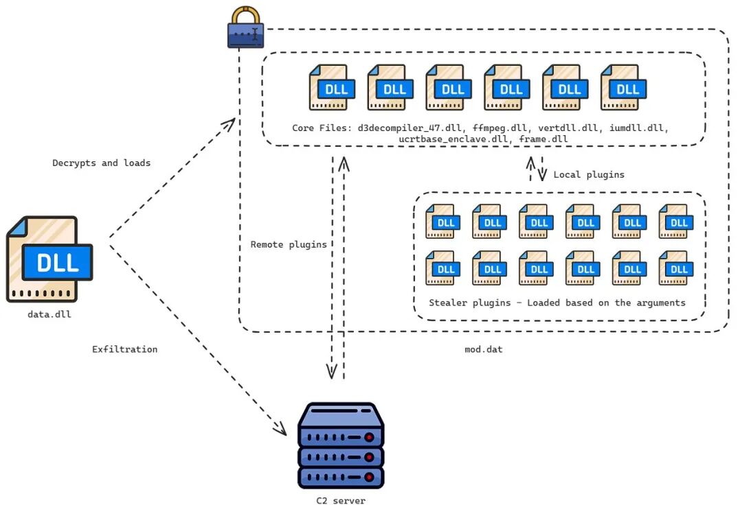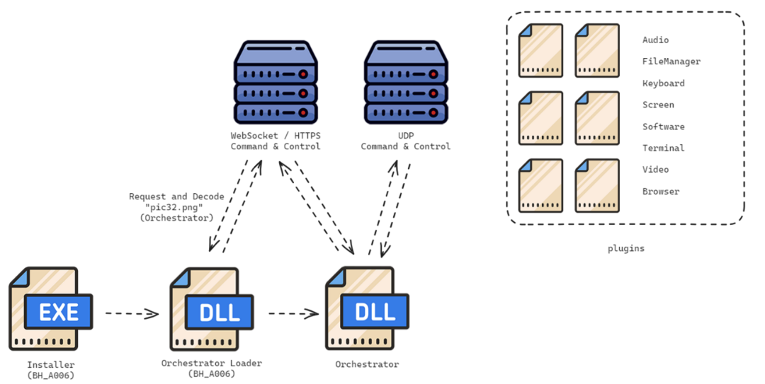 该恶意软件的大部分代码都在内存中执行,所观察到的插件具有与之前与