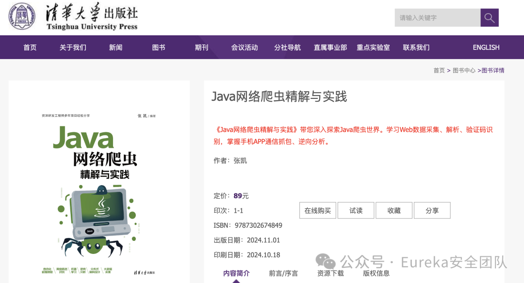 《Java网络爬虫精解与实践》全面而系统地介绍与网络爬虫程序相关的理论知识,并包含大量的实践操作案例。《Java网络爬虫精解与实践》共分为 8 章。第 1 章以自动化框架为基础,介绍网络爬虫程序的入门开发实践。第 2 章深入讲解网页内容的处理、解析技术和数据提取方法。第 3 章讨论验证码识别技术以及如何有效绕过验证码的策略。第 4 章涉及网络抓包技术及其对抗策略。第 5 章深入探讨 JavaScript 代码的混淆技术与逆向分析方法。第 6 章专注于移动端应用程序的数据爬取技术及相关逆向分析技术。第 7 章介绍构建分布式网络爬虫系统所需的关键技术。第 8 章通过实战案例,展示分布式网络爬虫系统设计与实现的思路。通过学习本书,读者将显著提升网络爬虫系统的设计与实现能力,并增强对网页代码及移动端应用程序代码的