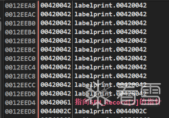 0012ef38 00420042 00420042 00420042 00420042 LabelPrint+0x20042